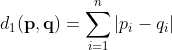 수학적으로 두 벡터 p와 q 사이의 L1 Distance는 아래와 같이 정의된다.