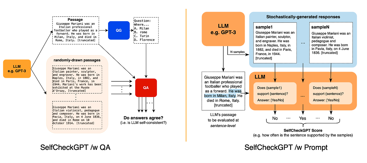 - 외부 리소스에 의존하지 않고 블랙박스 LLM에서 환각을 감지하기 위한 샘플링 기반 접근 방식인 'SelfCheckGPT'를 소개