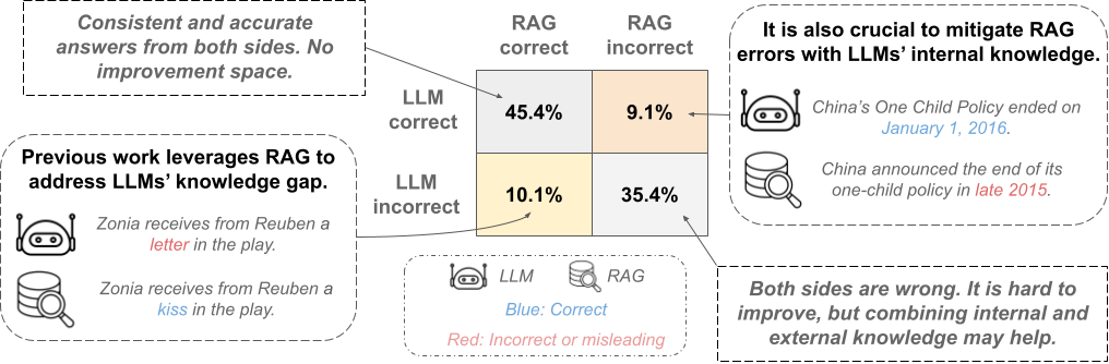 - 불완전한 검색 결과 및 Knowledge Conflicts는 광범위하게 발생하고, 이것들은 RAG의 오류를 초래함