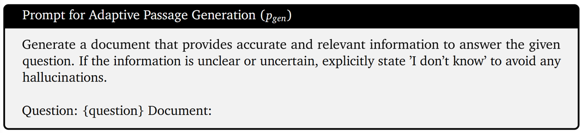 - question $q$를 기반으로 여러 개의 passages를 생성하도록 LLM prompting