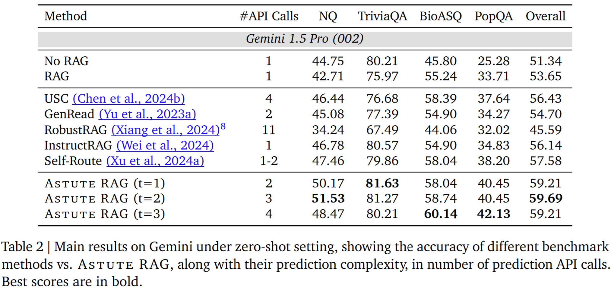 - Gemini에서 t를 늘리면 BioASQ와 PopQA의 성능이 증가함