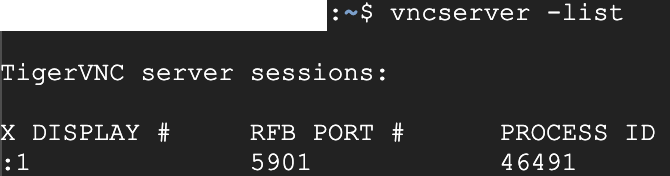 vncserver -list