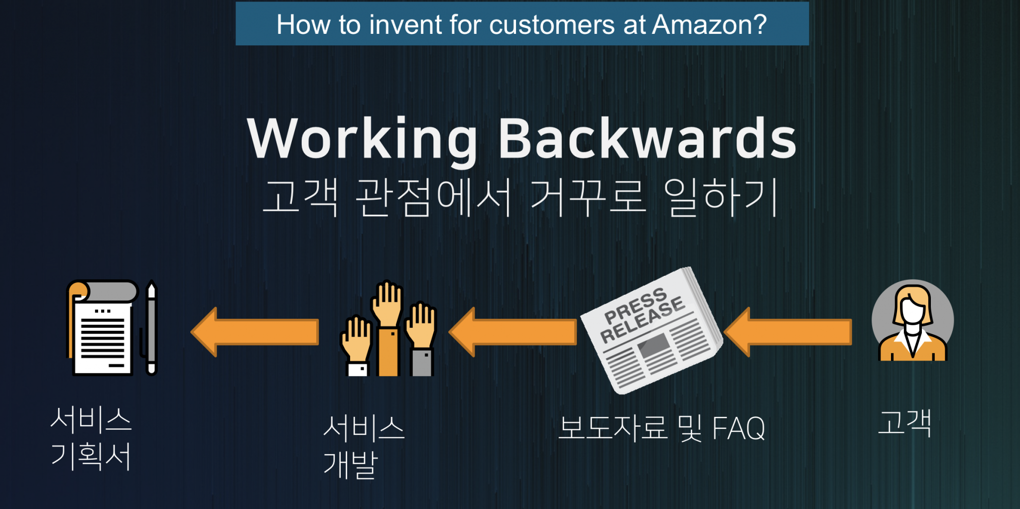 고객을 먼저 생각하는 Amazon (물론 Amazon 피셜)은 다르다고 한다. 고객의 입장에서부터 거꾸로 생각하여 일을 한다는 것이다.