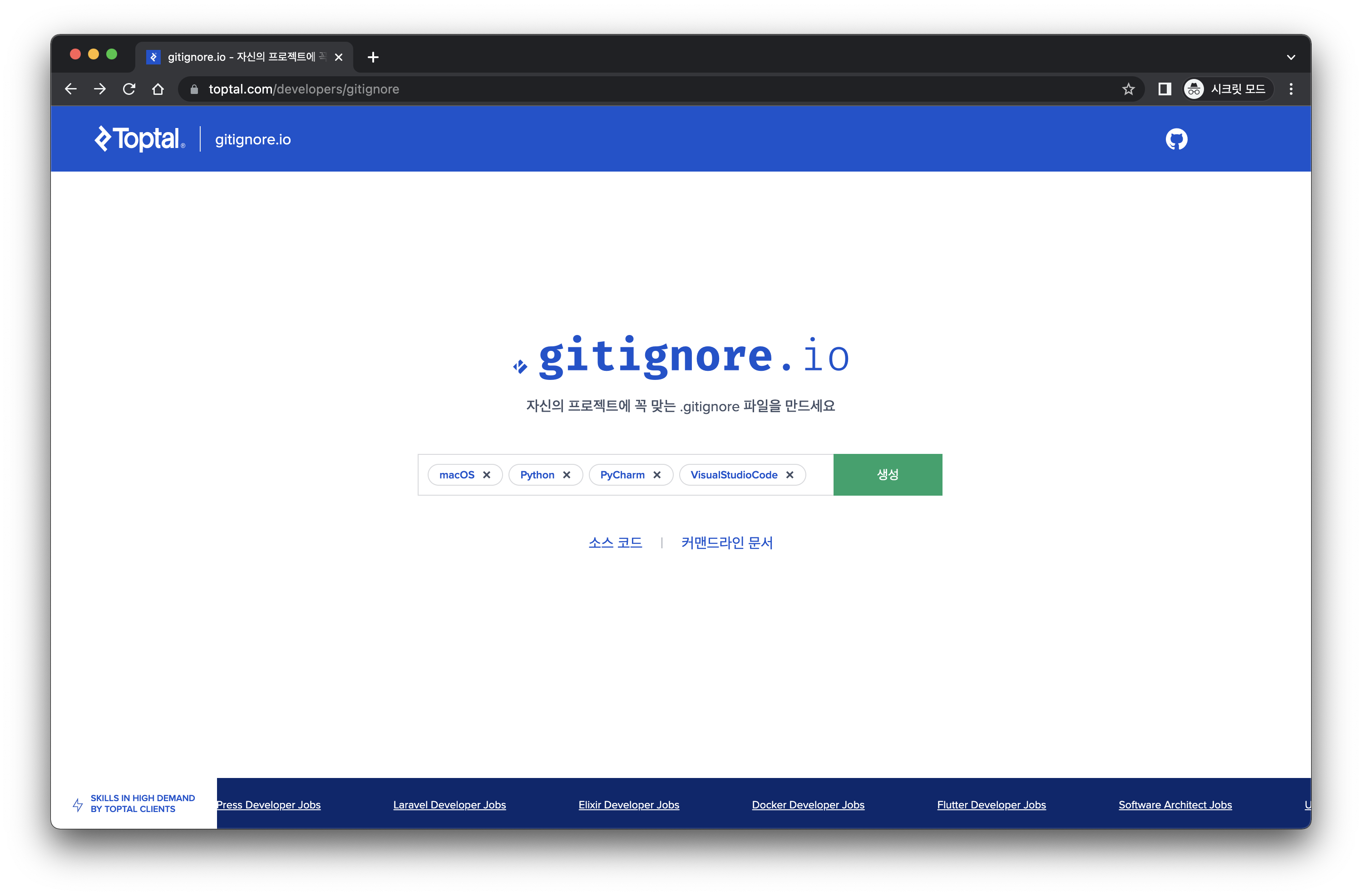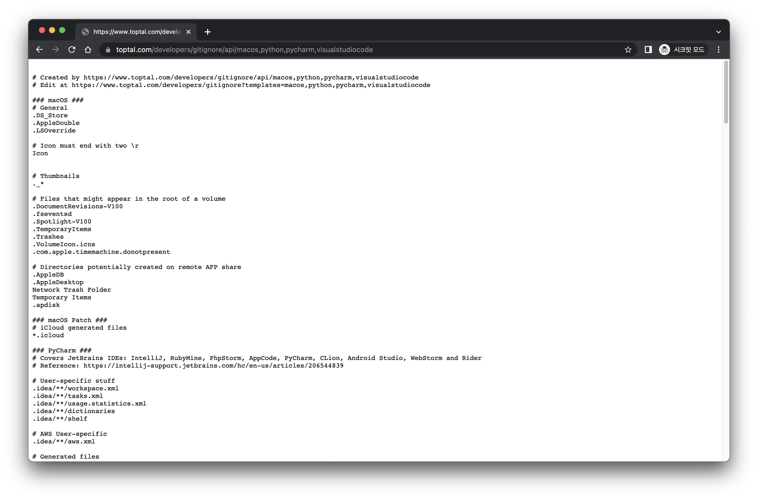 일일이 작성하기 귀찮은 .gitignore를 자동으로 만들어주는 사이트를 추천한다.