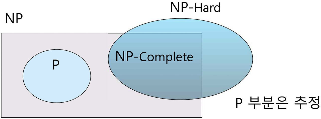 - 또는 다루기 힘들다고 증명되지 않았고, 다차시간 알고리즘도 찾지 못한 문제