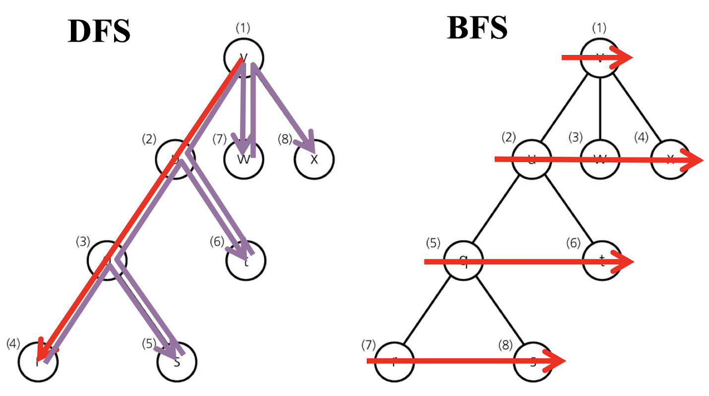 - 동일한 Tree를 각각 DFS/BFS로 방문하기
