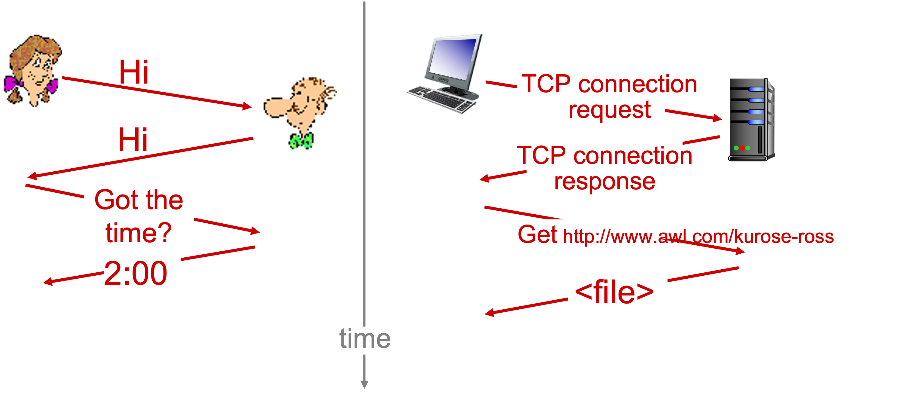 사람 간의 프로토콜과 컴퓨터 네트워크의 프로토콜 비교 :